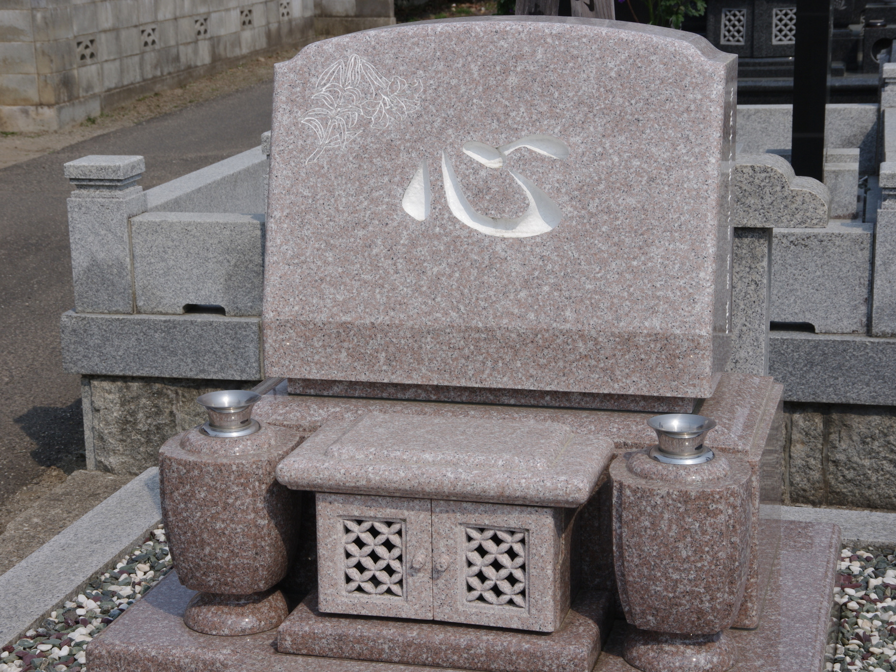 花立て 水鉢 香炉 拝石 塔婆立 墓誌 化粧砂利 などがあります。
